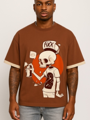 Skeleton street drip in Old Money Brown.Oversized hiphop-inspired tee crafted in 240 GSM cotton with bold skeleton print. A Gen Z essential for concerts, parties…
