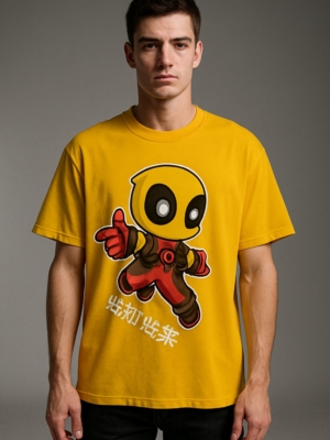 Yellow Spiderman Puff Print Oversized T-Shirt – 240 GSM Cotton | Pehanoge