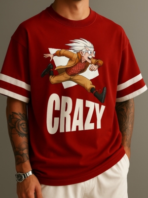 CRAZY Red Oversized Premium T-Shirt – 240 GSM Cotton | Pehanoge
