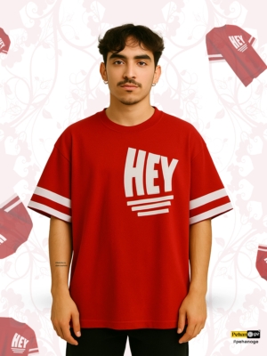 HEY Red Oversized Premium T-Shirt – 240 GSM Cotton | Pehanoge