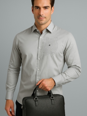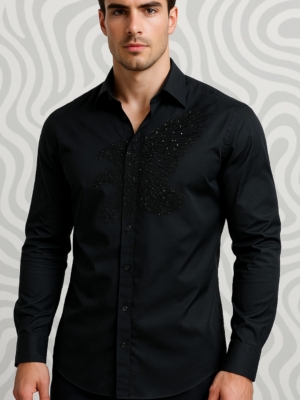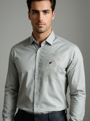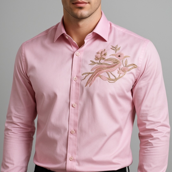 Grace, confidence, and sophistication — that’s what the Pehanoge Peacock Embroidered Giza Cotton Shirt brings to your wardrobe.